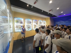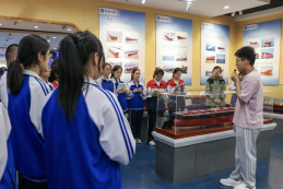 随后,5班与6班的同学们前往船舶博物馆,继续他们的探索学习之旅。在这里,他们近距离感受到了中国船舶工业的发展与成就,从古代木帆船到现代航母,一艘艘模型、一幅幅图片,生动展现了我国船舶事业的辉煌历程。同学们也为船舶工业中的中国智慧而骄傲自豪,对我校在船舶领域的伟大成就有了更具体的认识。